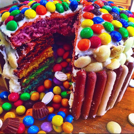 – Smarties (or skittles or whichever sweets/ chocolate you want inside the cake)