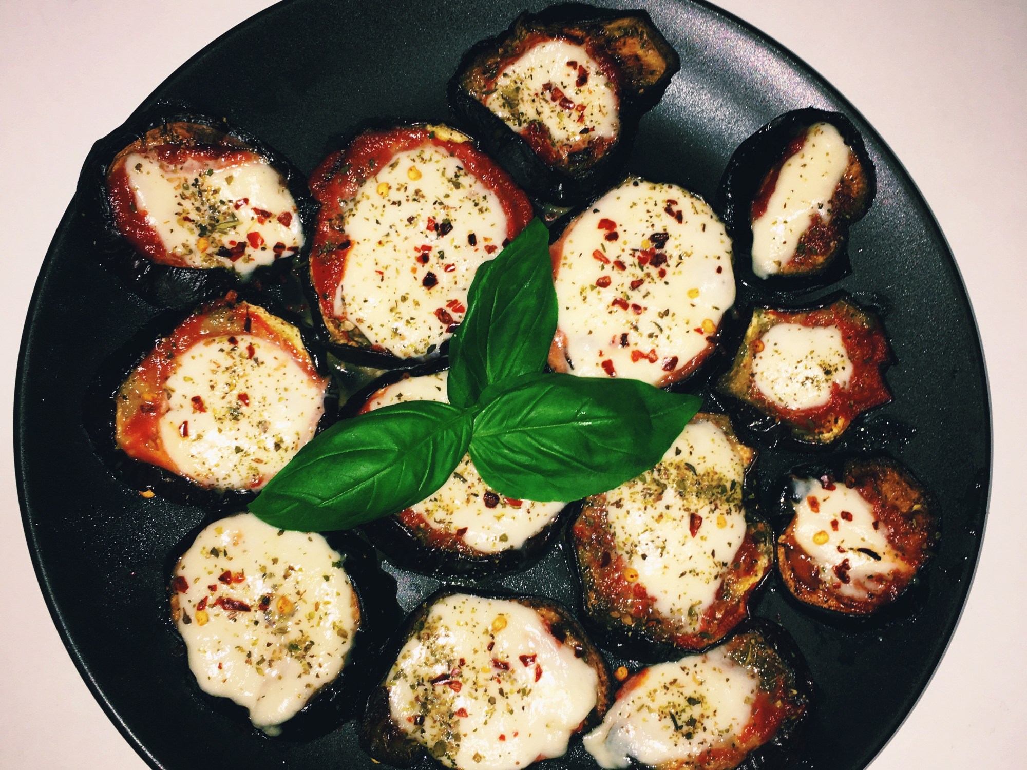 Pizza is one of my favourite things to eat, so I’m always trying to find healthier alternatives for it. So far my favourite is tortilla pizzas, but I thought that I would try using roasted aubergine as the base this time. It was super quick to make and is perfect for a starter, or to give to kids!