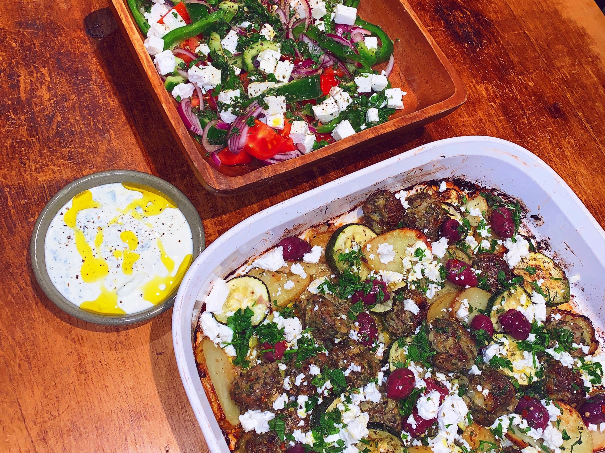 - Cook for about 35- 40 minutes in the oven, until the potatoes are cooked through. Turn the meatballs and vegetables about halfway through cooking.