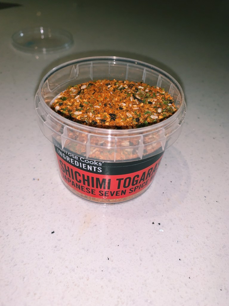 - Shichimi powder ( a japanese chilli seaweed powder, found in Watrose or amazon)