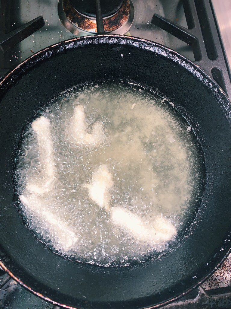 - Then heat the oil until very hot. You can test this by throwing in a bit of the cornflour, it should sizzle.