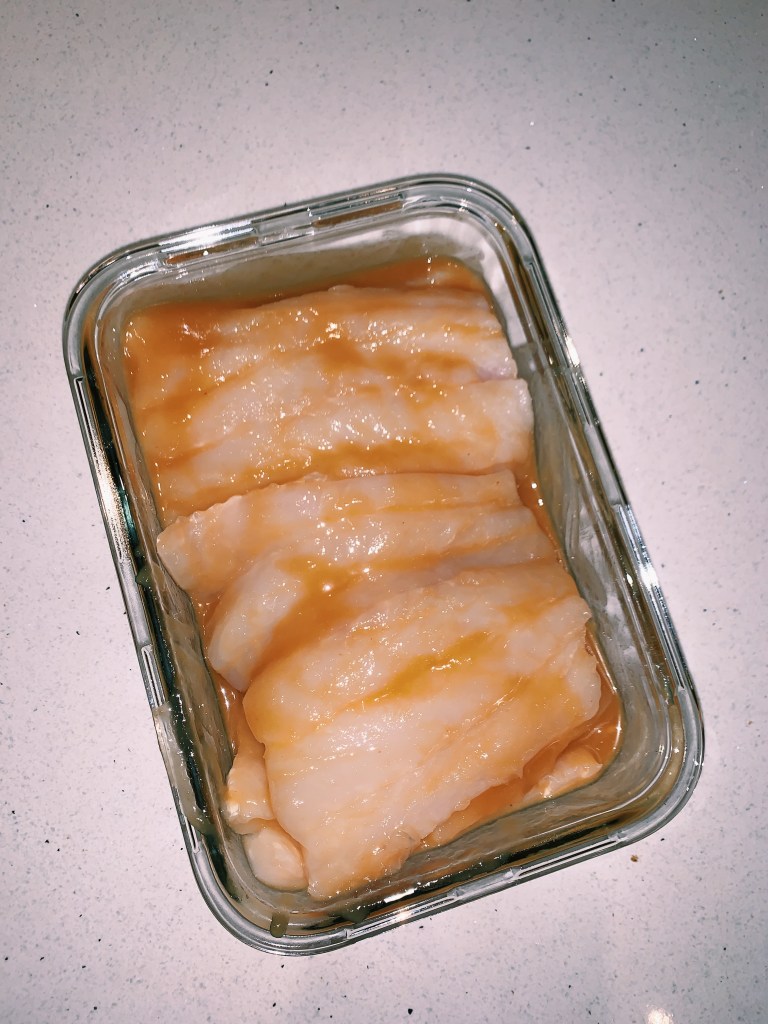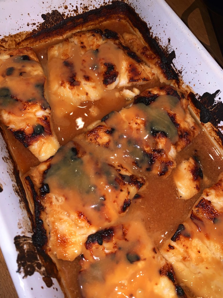 Decided to recreate Nobu’s (the Japanese restaurant) miso black cod. Soft, sweet and flakey. Black cod is hard to source and expensive so normal cod will do. Nobu restaurant leaves the cod marinading for 3 days!!
