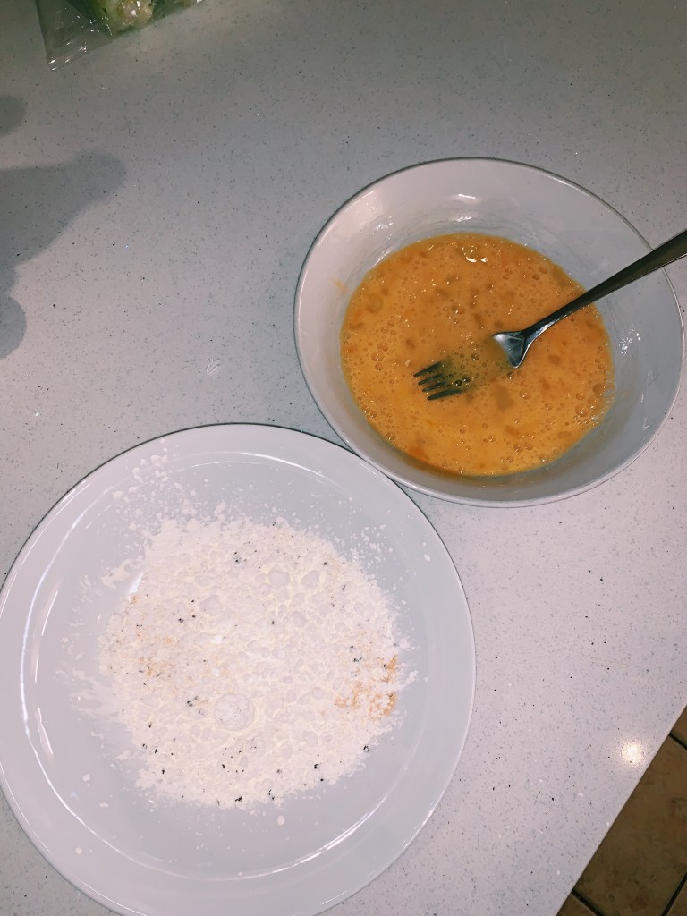 3. Dip the chicken pieces in the cornflour mix then into the egg, then back into the cornflour mix. This can be a bit tedious but do it as carefully as you can to avoid excess batter. Sometimes it is useful to use something like a slotted spoon or fork to do this, so your hands don’t keep getting sticky.