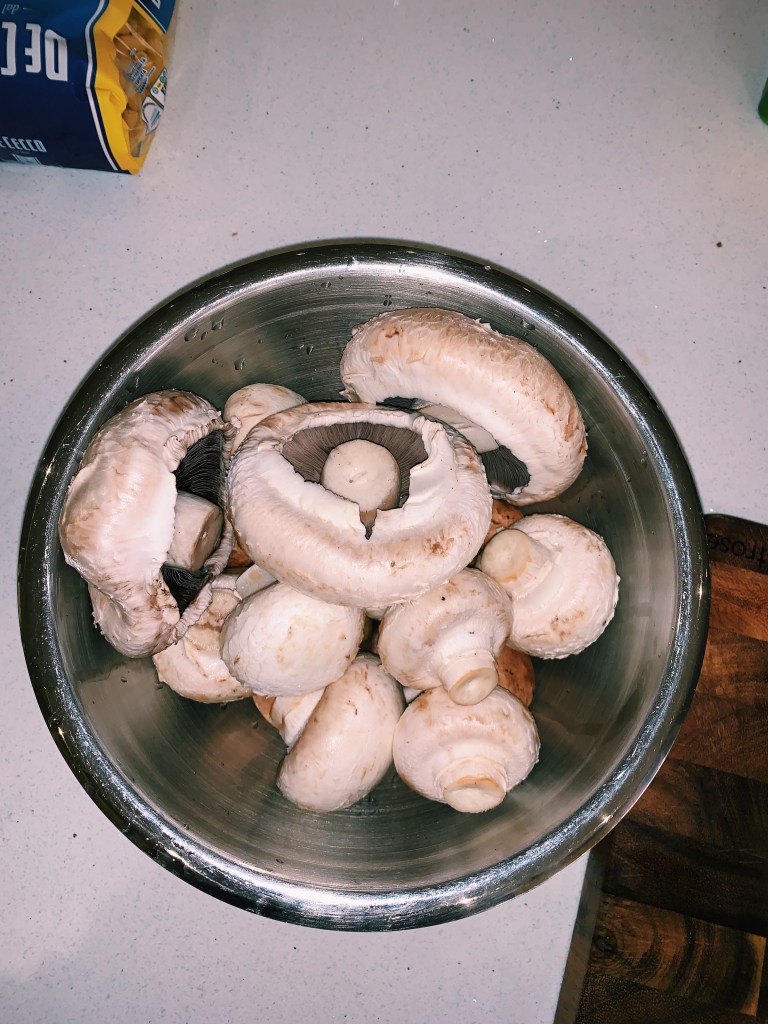 ⁃ Mushrooms (I used 1 pack of regular white mushrooms, 1 pack of chestnut mushrooms and 1 pack of portabello mushrooms), sliced
