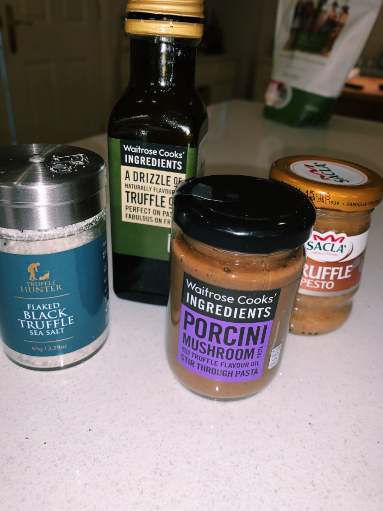 ⁃ 1 bottle of truffle pesto (Sainsbury’s, Tesco, Waitrose, Amazon)