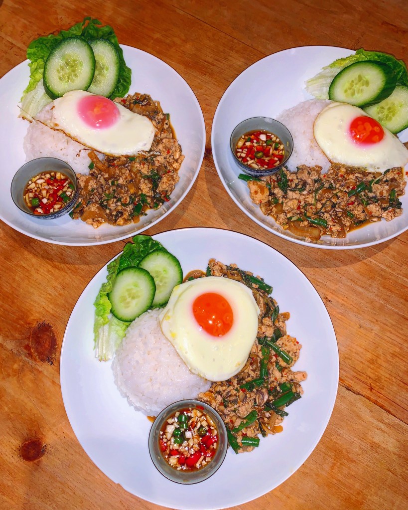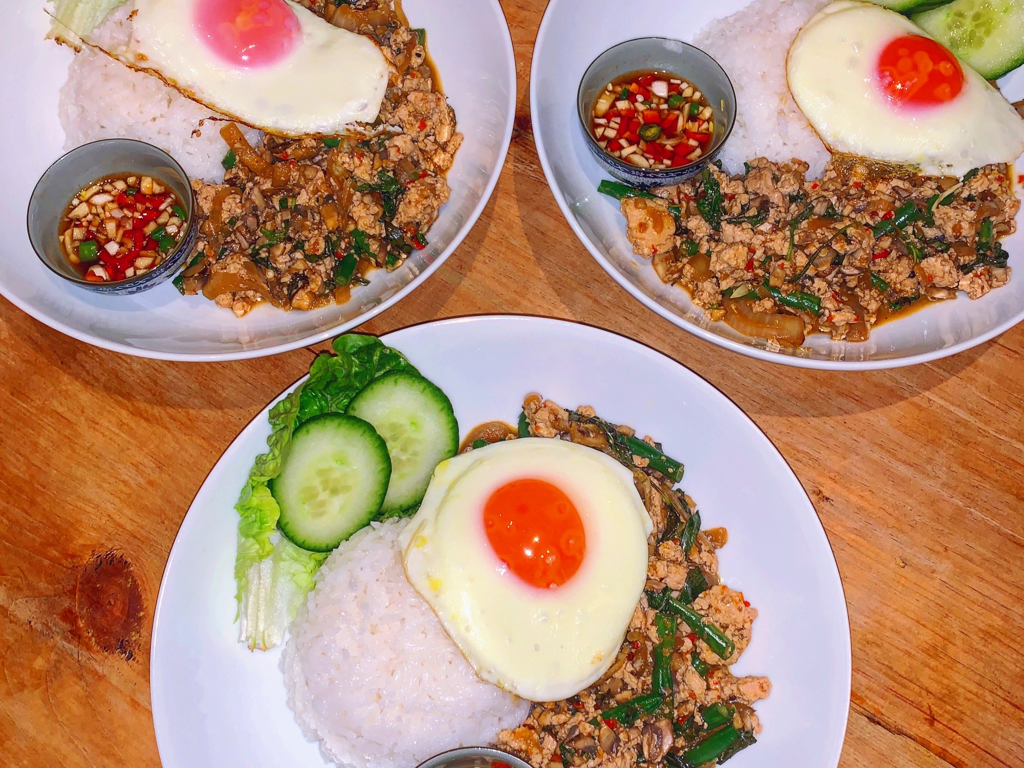 Thai food is one of my favourite cuisines and this is one of my favourite thai dishes. When I travelled around Thailand for 6 weeks, this is what I would order frequently- it’s a spicy, garlicky stir fry with a sweet touch of Thai basil. Thai basil is an absolute game changer for that authentic thai sauce- you can now buy it from most major supermarkets or online. If you’re struggling to find it however, you can just use Italian basil. Typically, this dish is made with minced pork but you can use any minced meat/ pieces. I find that using tofu and mushrooms, is just as nice and healthier. I like my food to have strong flavours so have used lots of garlic, chilli and thai basil. If you don’t like these flavours as strong, just reduce the amounts to your liking.